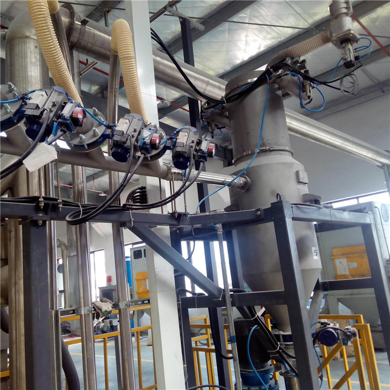 多組份吸料計(jì)量稱(chēng),主要由截氣閥、過(guò)濾器、進(jìn)料閥組、稱(chēng)重模塊、脈沖反沖裝置、卸料閥、儲(chǔ)料倉(cāng)等組成。多組份吸料計(jì)量采用負(fù)壓平衡技術(shù),通過(guò)真空負(fù)壓將物料吸到儲(chǔ)料倉(cāng)內(nèi),在吸料的同時(shí)對(duì)物料進(jìn)行計(jì)量,根據(jù)物料(粉末)的流動(dòng)性,可增設(shè)破拱裝置以助流,可以最多20個(gè)管道同時(shí)接入該計(jì)量稱(chēng)進(jìn)行計(jì)量。精度:±200g或±3‰