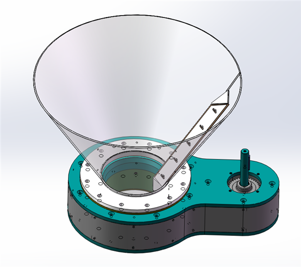 刮板式下料器是由電機、殼體、齒輪、刮板等組成,由電機傳動齒輪、齒輪傳動刮板進行破拱;一般安裝在料倉底部輔助下料,物料進入刮板式下料器的料倉中,刮板電機帶動齒輪傳動,齒輪傳動刮板繞倉壁做圓周運動,物料經(jīng)刮板作用力落下。