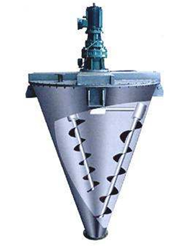 立式錐形混合機(jī)的攪拌漿與容器壁之間間隙非常小,以防止物料粘結(jié)
